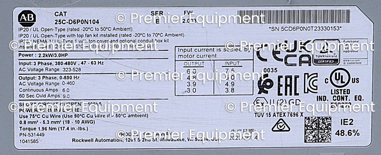 * ALLEN BRADLEY 25C-D6P0N104 /B POWERFLEX 527 3 HP AC DRIVE