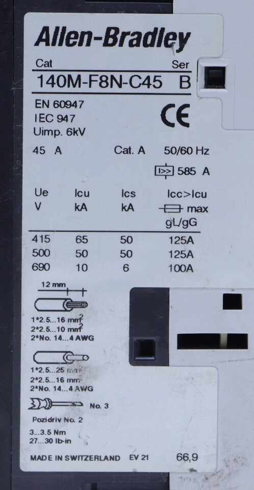 ALLEN BRADLEY 140M-F8N-C45 SER B MOTOR CIRCUIT BREAKER