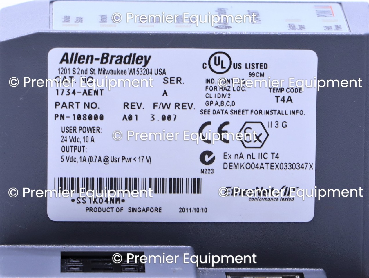 Pictures of representative item. ALLEN BRADLEY 1734-AENT SER AI/O ADAPTER ETHERNET /IPSome F/W are slightly different.