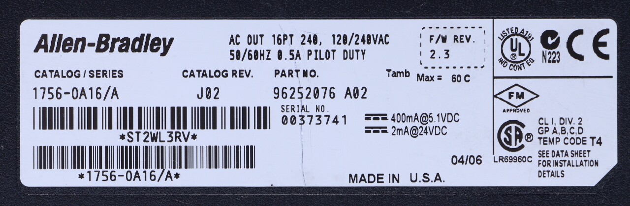 * ALLEN BRADLEY 1756-0A16/A CONTROLLOGIX OUTPUT MODULE