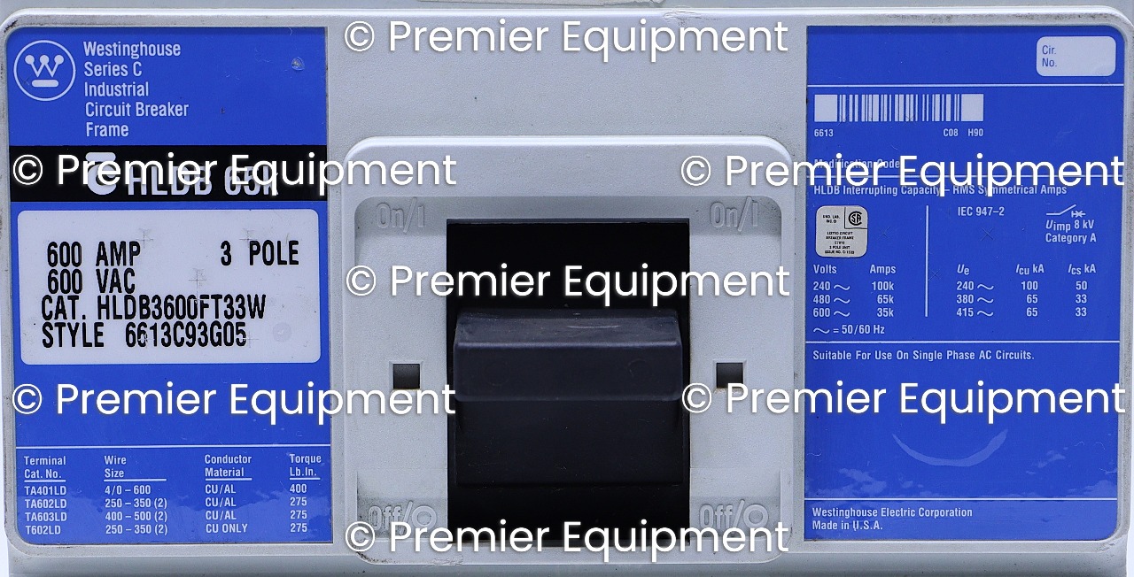 * WESTINGHOUSE HLDB3600FT33W 600A 600V 3 POLE CIRCUIT BREAKER