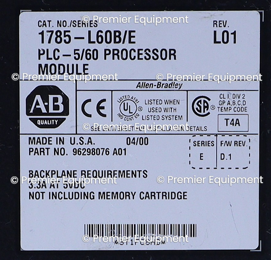 PROCESSOR MODULEPLC-5/6064K WORD SRAM3072 TOTAL I/O3072 ANALOG I/ODH+ / REMOTE I/ORS-232