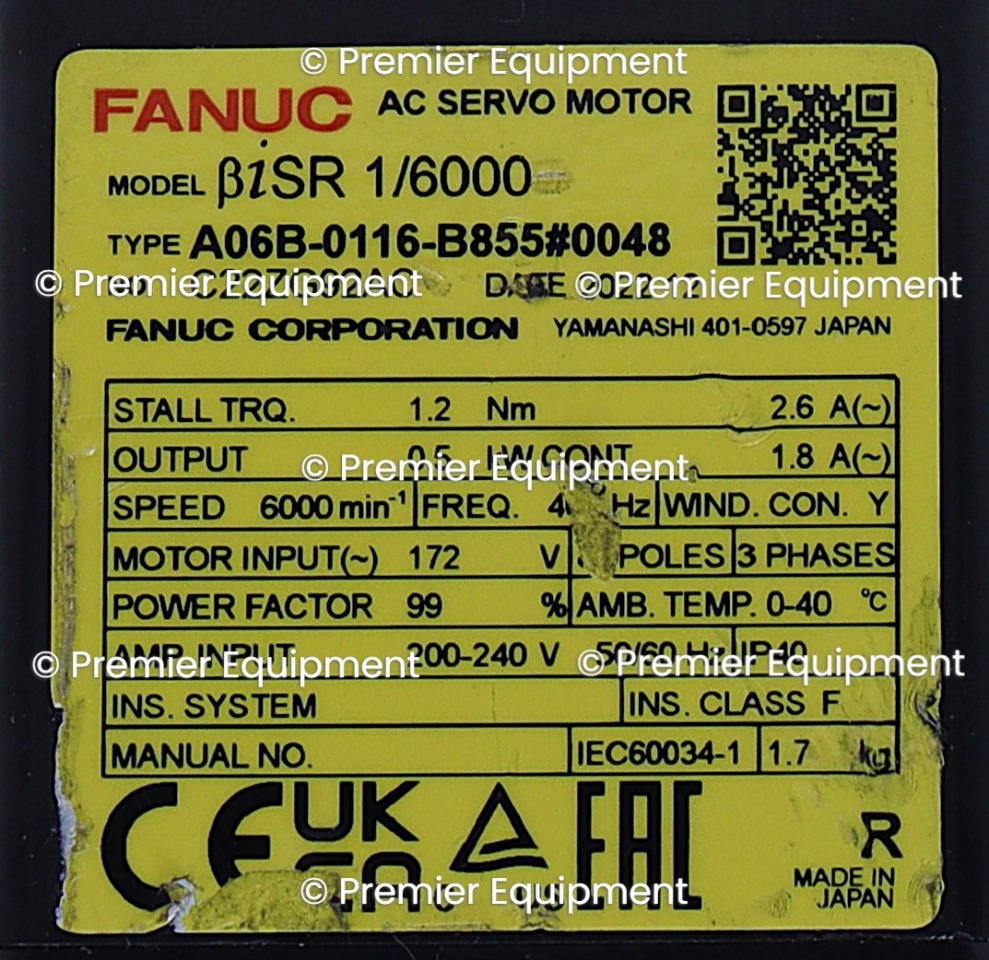 * FANUC A06B-0116-B855#0048 AC SERVO MOTOR BiSR 1/6000 6000 RPM