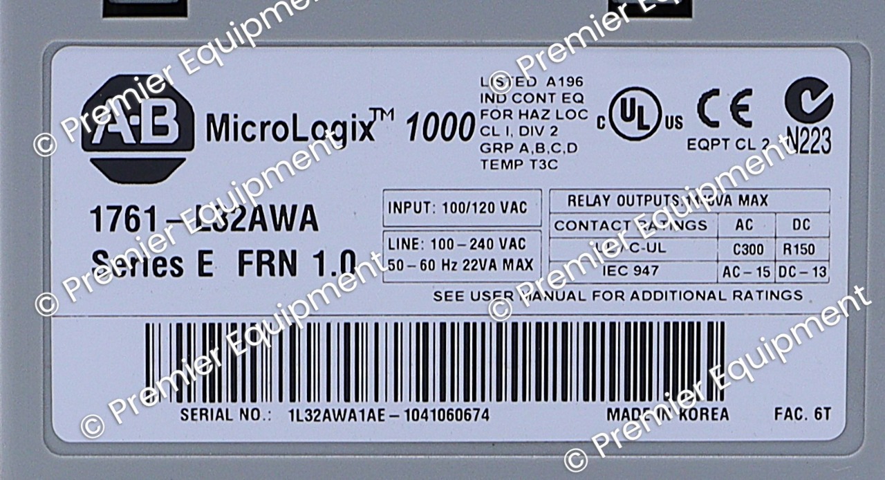 ALLEN BRADLEY 1761-L32AWA SER E MICROLOGIX 1000 CONTROLLER