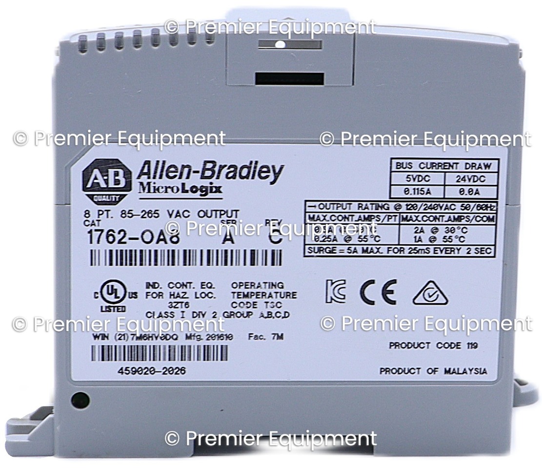 ALLEN BRADLEY 1762-OA8 /A MICROLOGIX 8 POINT 85-265 VAC OUTPUT MODULE SER A REV CMICROLOGIX85-265 VAC OUTPUT8 POINT DIGITALRACK MOUNTABLEMissing front gate
