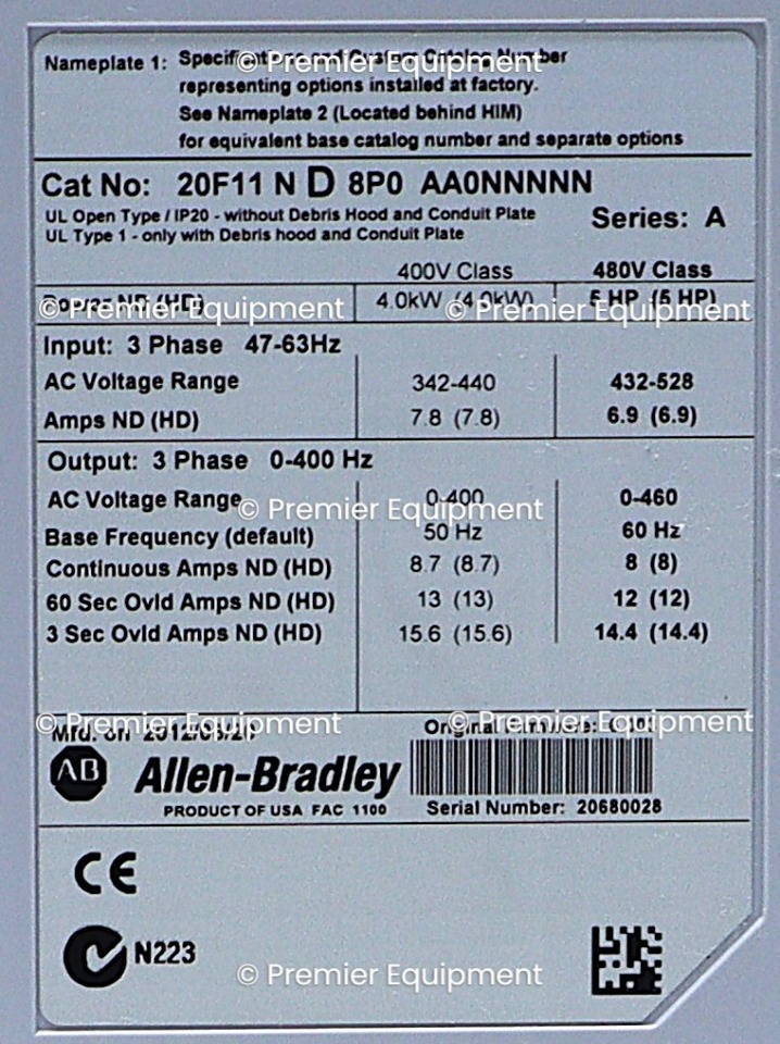 Listed for parts. No returns, No refunds. Nice physical condition.AC DRIVEAIR COOLEDPOWERFLEX 753AC INPUT WITH PRECHARGEIP20/IP00OPEN TYPE480 VAC / 650 VDC3.7 KW / 5 HP8 AMP