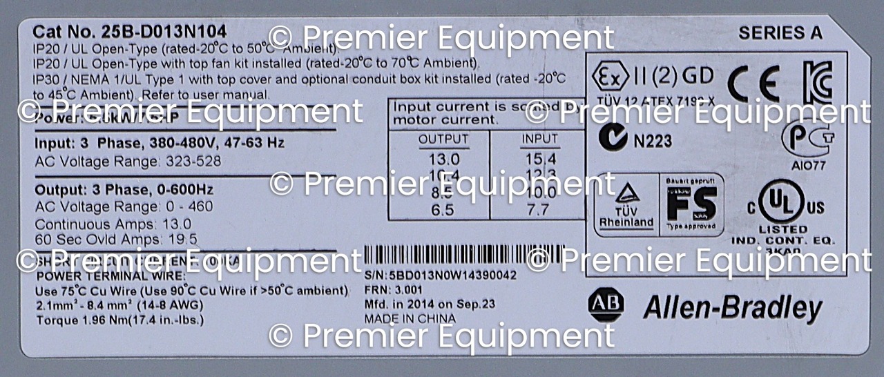 AB ALLEN BRADLEY 25B-D013N104 POWERFLEX 525 AC DRIVE