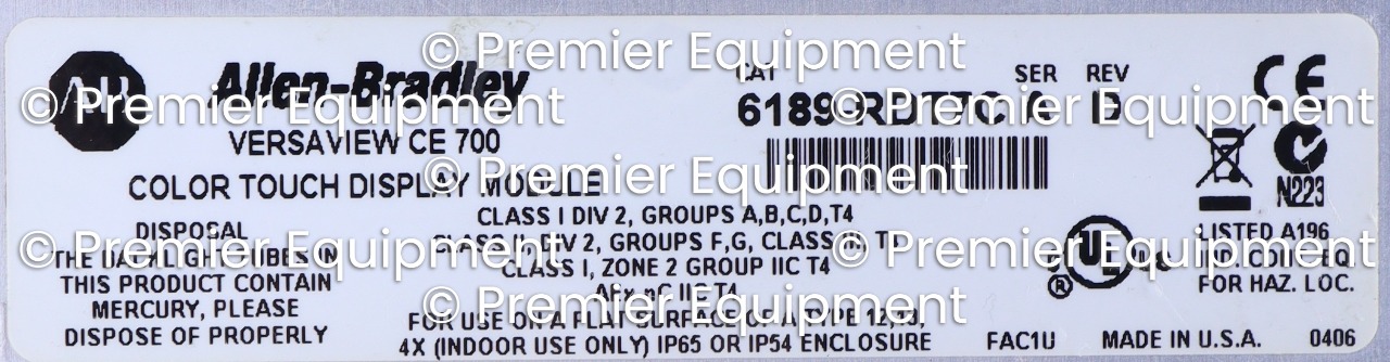 * ALLEN BRADLEY VERSAVIEW CE 700 6189-RDT7C SER A REV D COLOR TOUCH DISPLAY MODULE *READ*