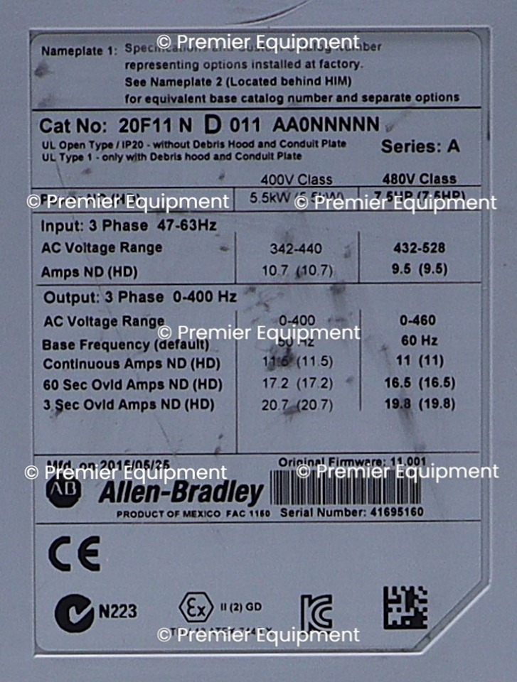 Listed for parts. No returns, No refunds.480 VAC / 650 VDC5.5 KW / 7.5 HP11 AMP