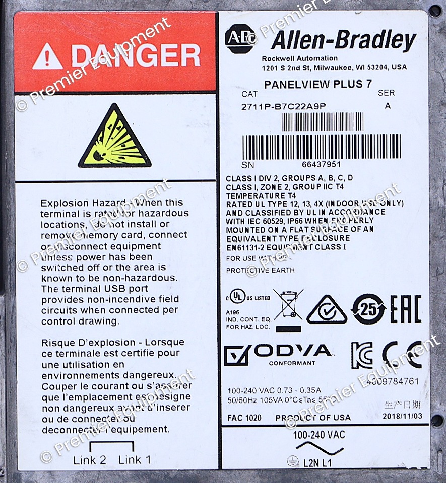 ALLEN BRADLEY 2711P-B7C22A9P /A PANELVIEW PLUS 7 OPERATOR PANEL
