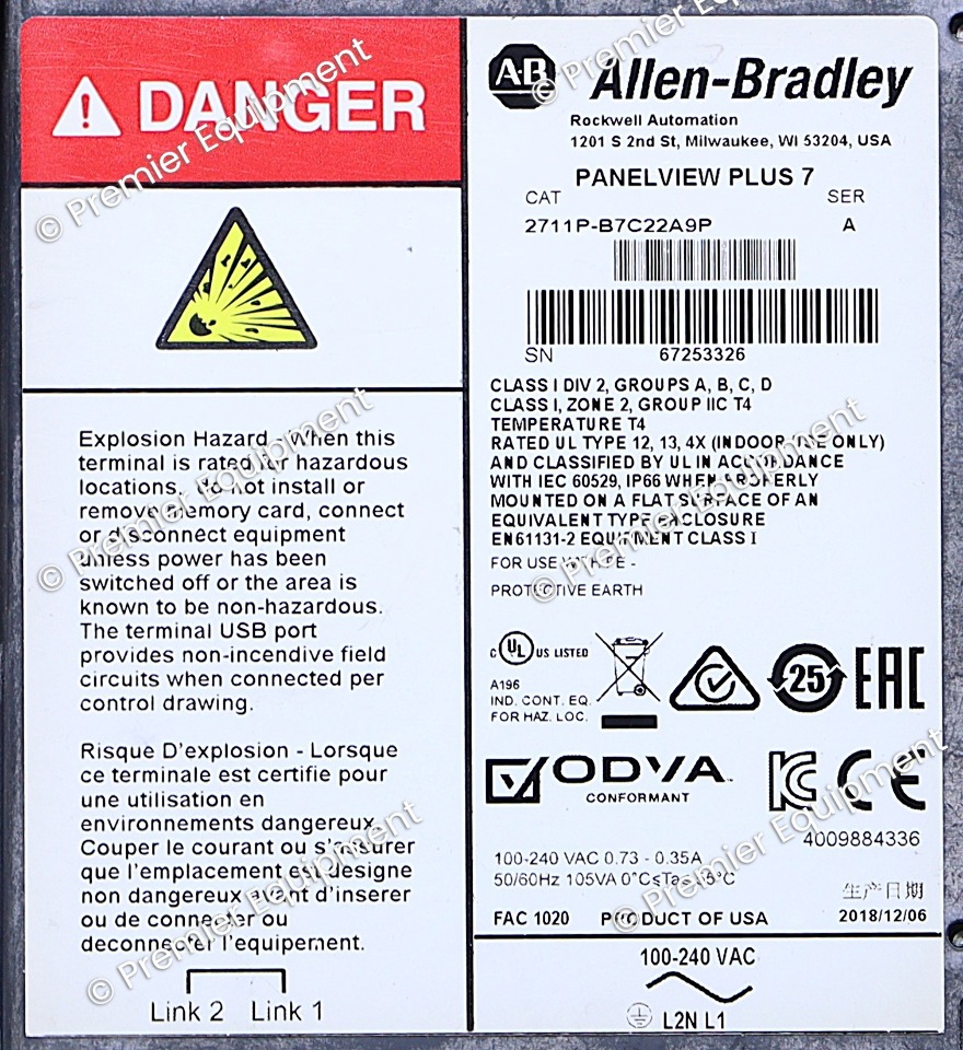 ALLEN BRADLEY 2711P-B7C22A9P /A PANELVIEW PLUS 7 OPERATOR PANEL