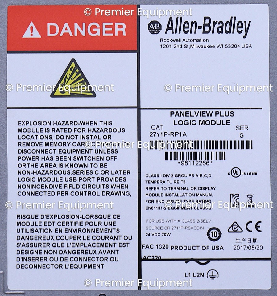 ALLEN BRADLEY 2711P-RP1A SER. G LOGIC MODULE ONLY