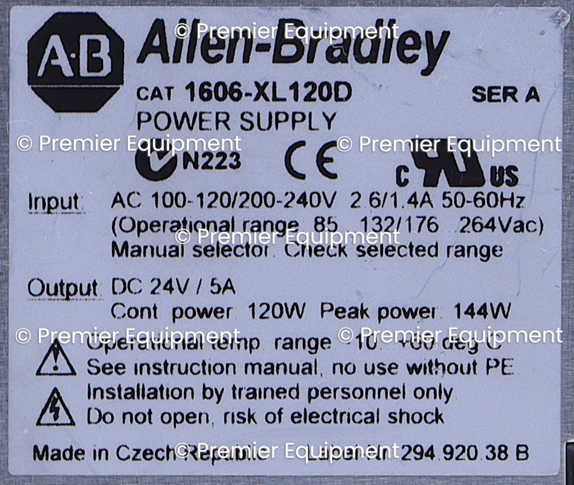 ALLEN BRADLEY 1606-XL120D SERIES A POWER SUPPLY 1606-XL SERIESINPUT VOLTAGE - 100-240 V ACRATED OUTPUT - 120 W24 V DC OUTPUT