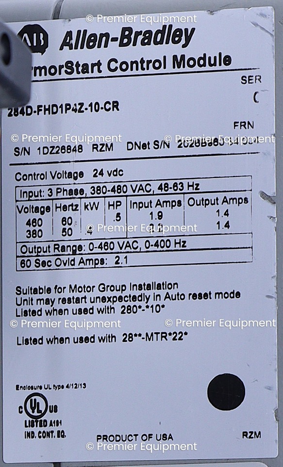 ALLEN BRADLEY 284D-FHD1P4Z-10-CR /C VARIABLE FREQUENCY DRIVE W/ ARMORSTART BASE