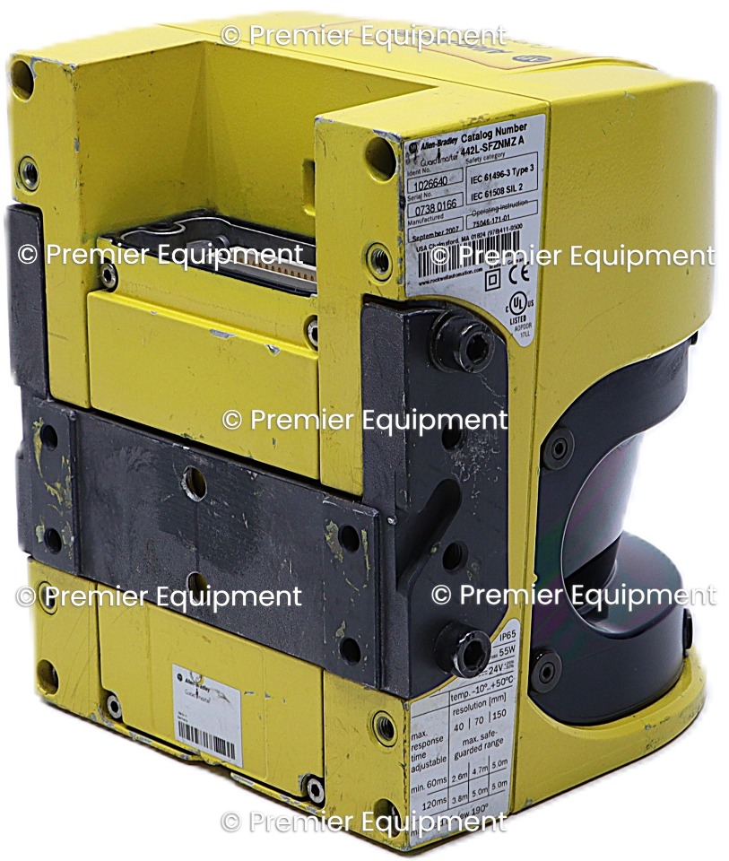 ALLEN BRADLEY 442L-SFZNMZ SER A LASER SAFETY SCANNER 442LSFZNMZLASER SCANNERSAFETYSAFEZONEMULTIZONESCAN HEAD AND I/O MODULE24 VScuffs and scratches on the casing.