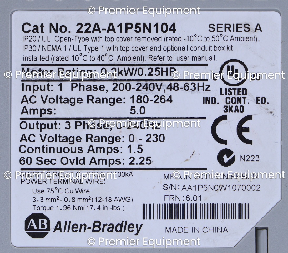 * ALLEN BRADLEY 22A-A1P5N104 SERIES A VARIABLE FREQUENCY DRIVE