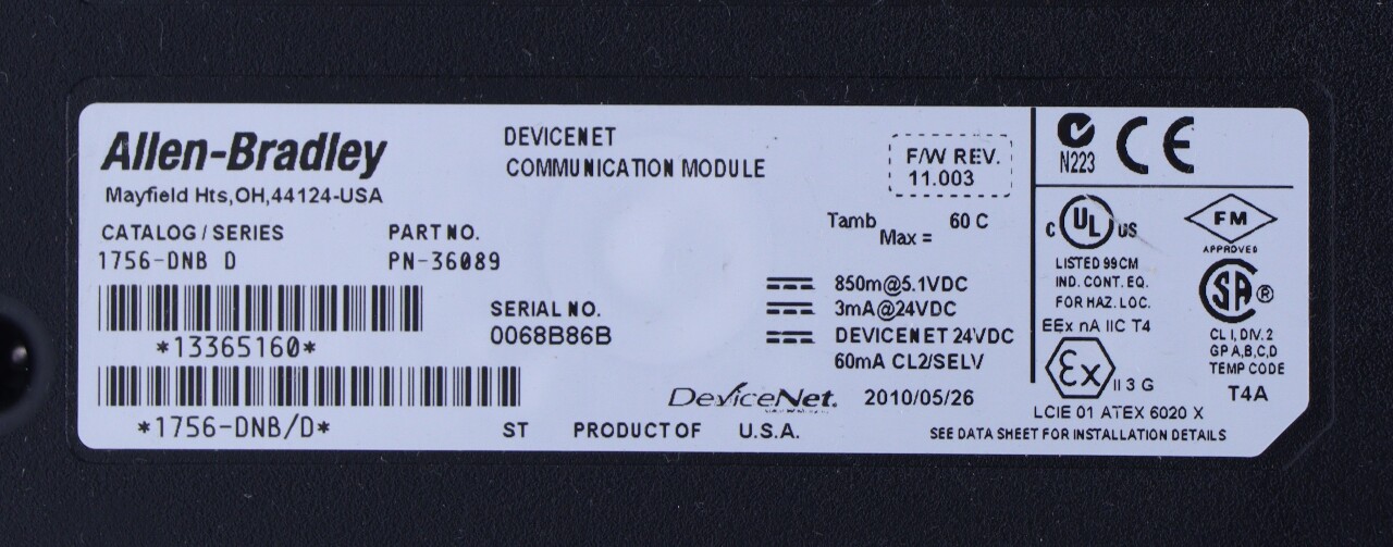 * ALLEN BRADLEY DEVICENET 1756-DNB SER D COMMUNICATION MODULE