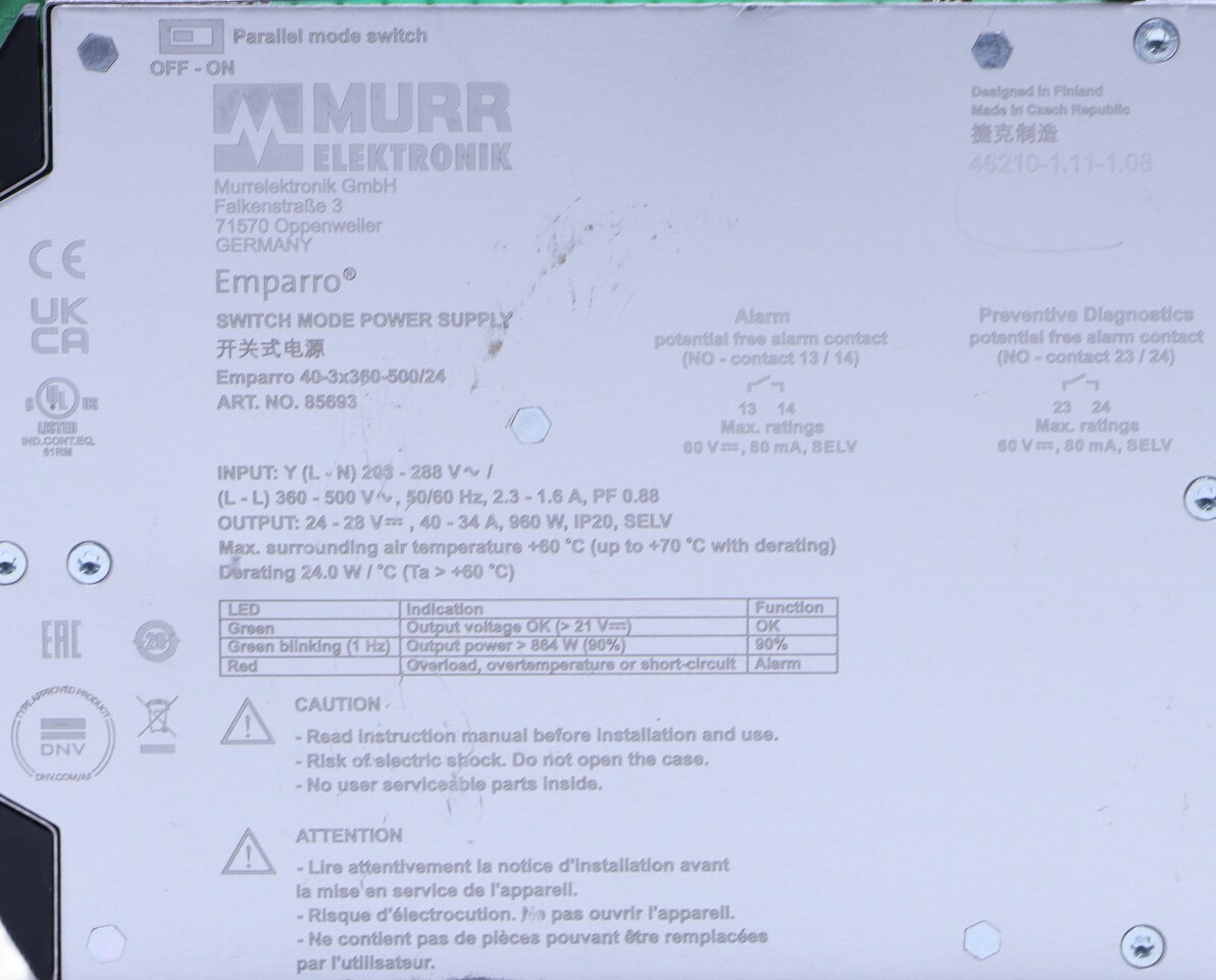 * MURR ELEKTRONIK EMPARRO 85693 40-3x360-500/24 SWITCH MODE POWER SUPPLY