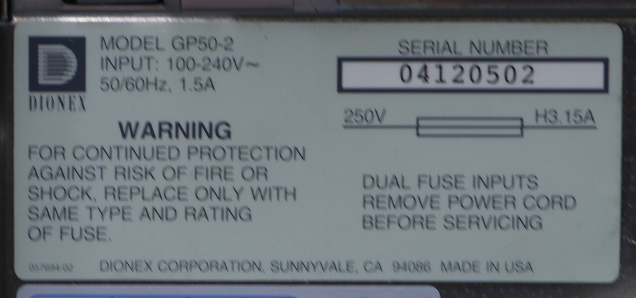 DIONEX MODEL GP50-2 100-240V 50/60Hz 1.5A GRADIENT PUMP