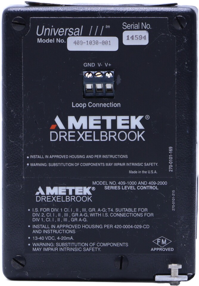 AMETEK DREXELBROOK 409-1000, 2000 SERIES LEVEL CONTROL TRANSMITTER
