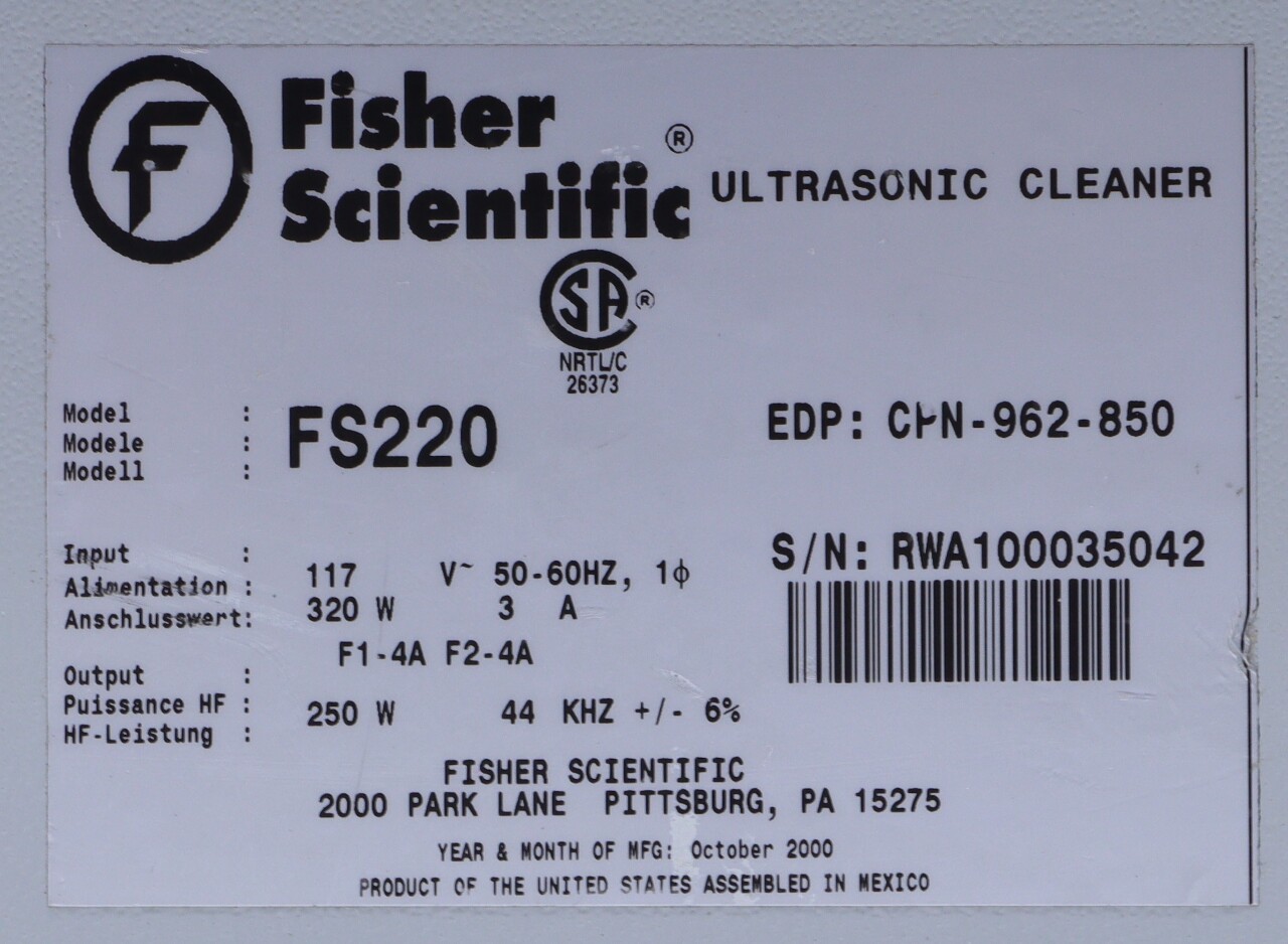 FISHER SCIENTIFIC FS220 ULSTRASONIC CLEANER