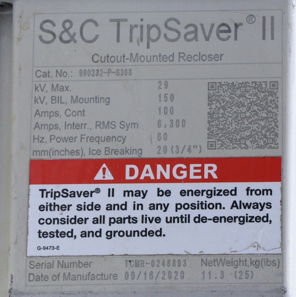 * S&C TRIPSAVER® II 990232-P-S368 CUTOUT-MOUNTED RECLOSER