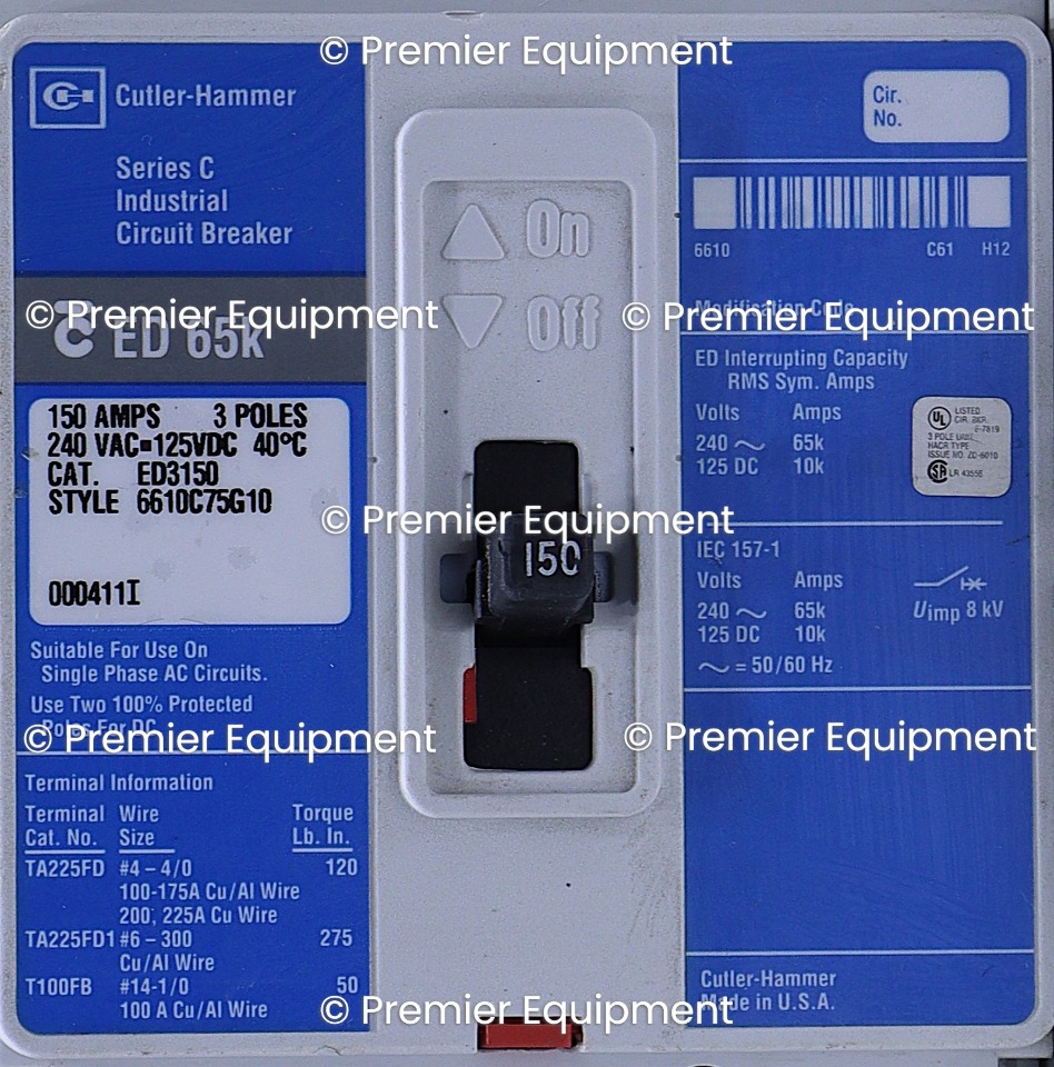 THERMAL-MAGNETIC CIRCUIT BREAKERWITH NON-INTERCHANGEABLE TRIP UNIT240 VAC / 125 VDC MAXTYPE ED65 KAIC AT 240 VAC3 POLE150 AMP RATING