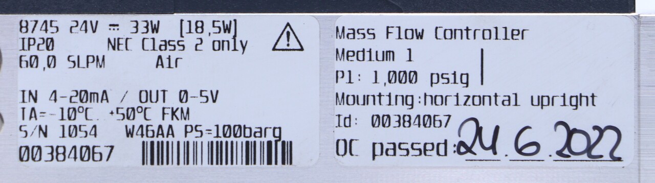 BURKERT 8745 MASS FLOW CONTROLLER 24V