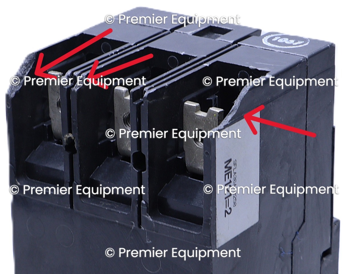 Last picture shows broken off corners on the bottom of the breaker3 POLE600 VAC250 AMP
