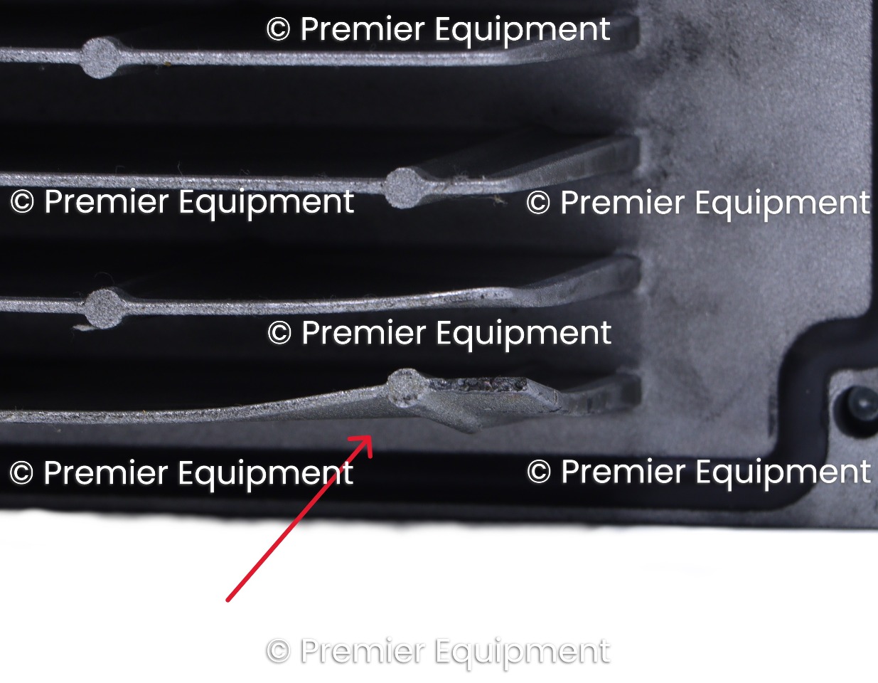 A bend in the heatsink as shown in the pictures. Listed as is, for parts. No refunds or returns.