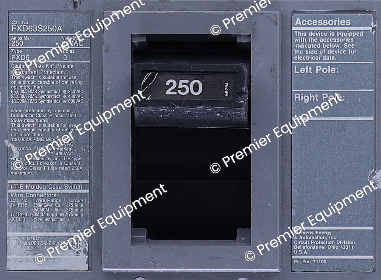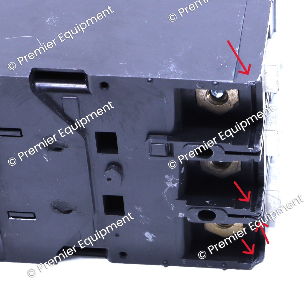 Both corners on the bottom of the breaker are chipped off as shown in the last picture.3 POLE3 PHASE250 AMP600V35KAIC @ 480V