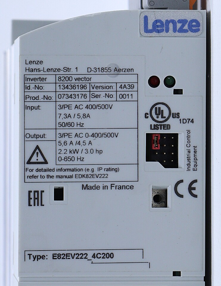 * LENZE E82EV222_4C200 8200 VECTOR DRIVE FREQUENCY INVERTER