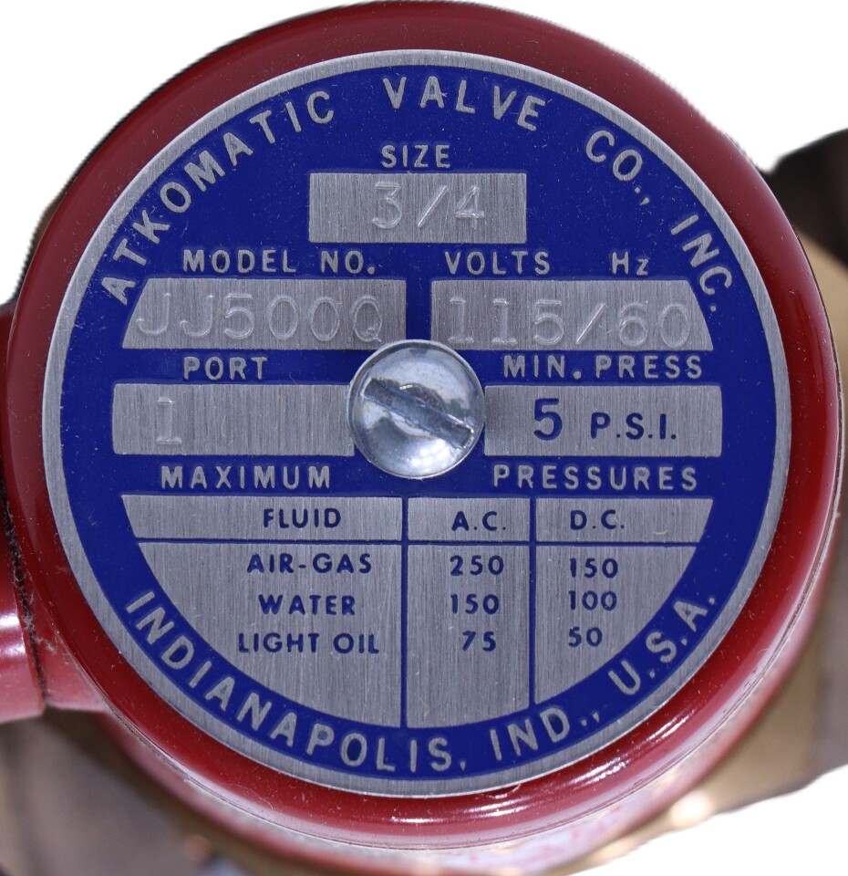 ATKOMATIC TYPE JJ-500-Q JJ500Q SIZE 3/4" 115V 60Hz 2-WAY SOLENOID VALVE