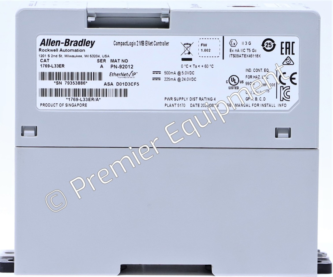 * SURPLUS ALLEN BRADLEY 1769-L33ER COMPACTLOGIX 2MB ENET CONTROLLER