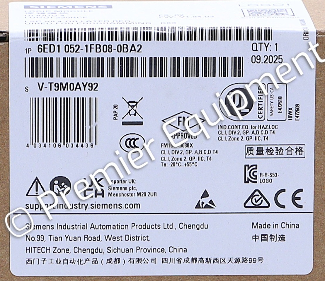 SIEMENS 6ED1 052-1FB08-0BA2 LOGIC MODULEDISPLAY POWER SUPPLY / I/O: 115 V/230 V/RELAY8 DI/4 DOMEMORY 400 BLOCKSMODULARLY EXPANDABLEETHERNETINTEGRATED WEB SERVERDATA LOGNEW IN FACTORY SEALED BOX