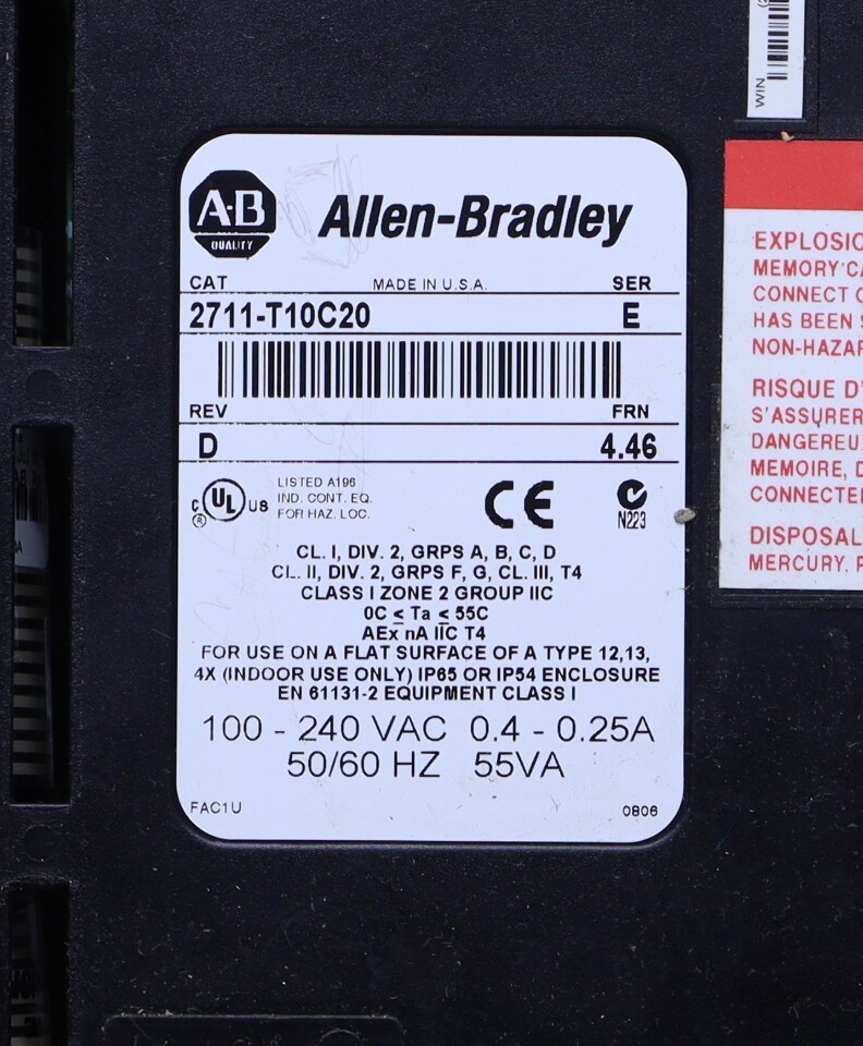 ALLEN BRADLEY 2711-T10C20 PANELVIEW 1000 OPERATOR INTERFACE PANEL