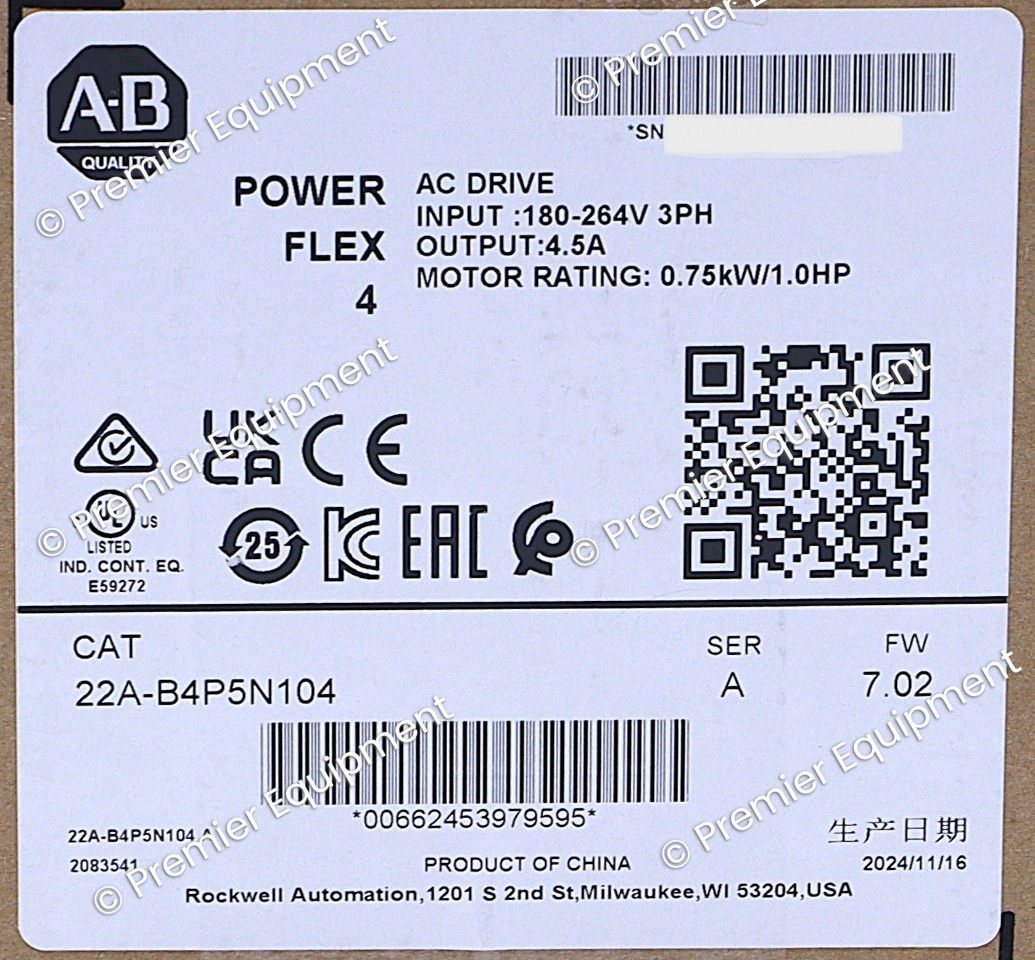 ALLEN BRADLEY 22A-B4P5N104 SER A FW 7.02 POWERFLEX 4 AC DRIVE