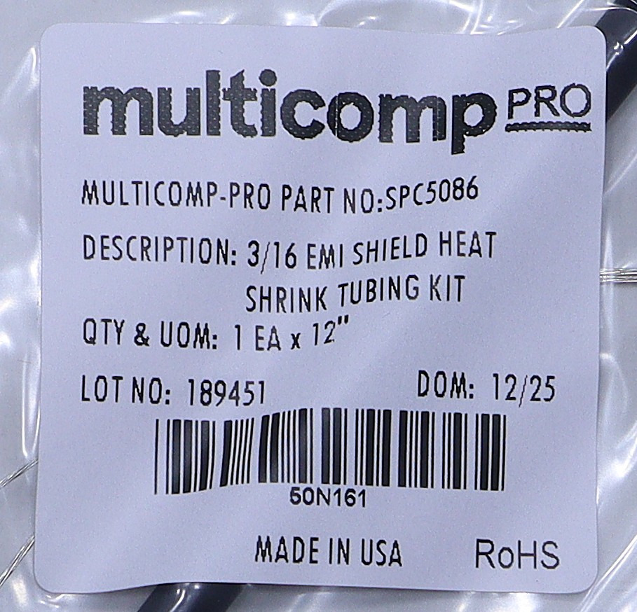 * MULTICOMP SPC5086 3/16 EMI SHIELD HEAT SHRINK TUBING KIT 1 X 12"