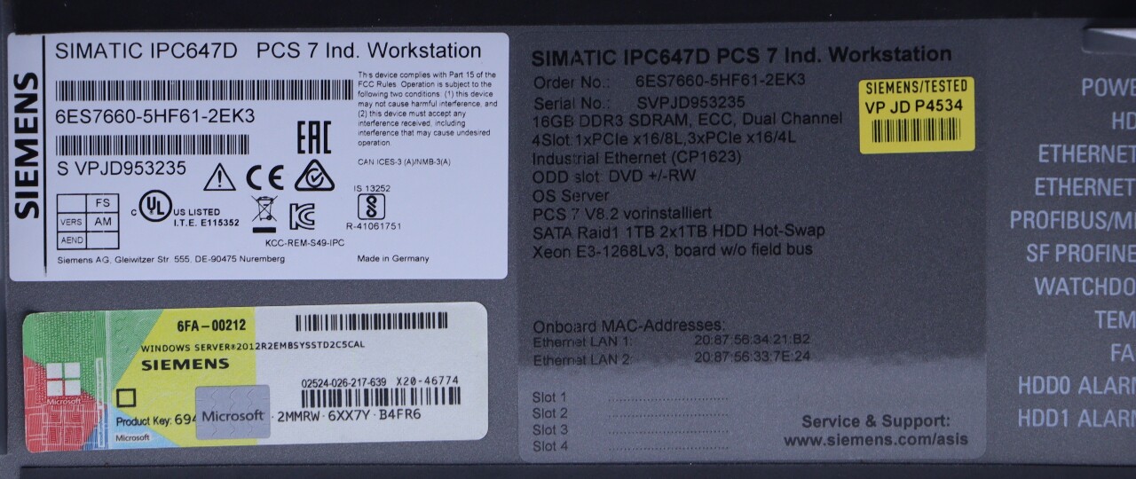 * SIEMENS SIMATIC 6ES7660-5HF61-2EK3 PCS 7 IPC647D INDUSTRIAL WORKSTATION