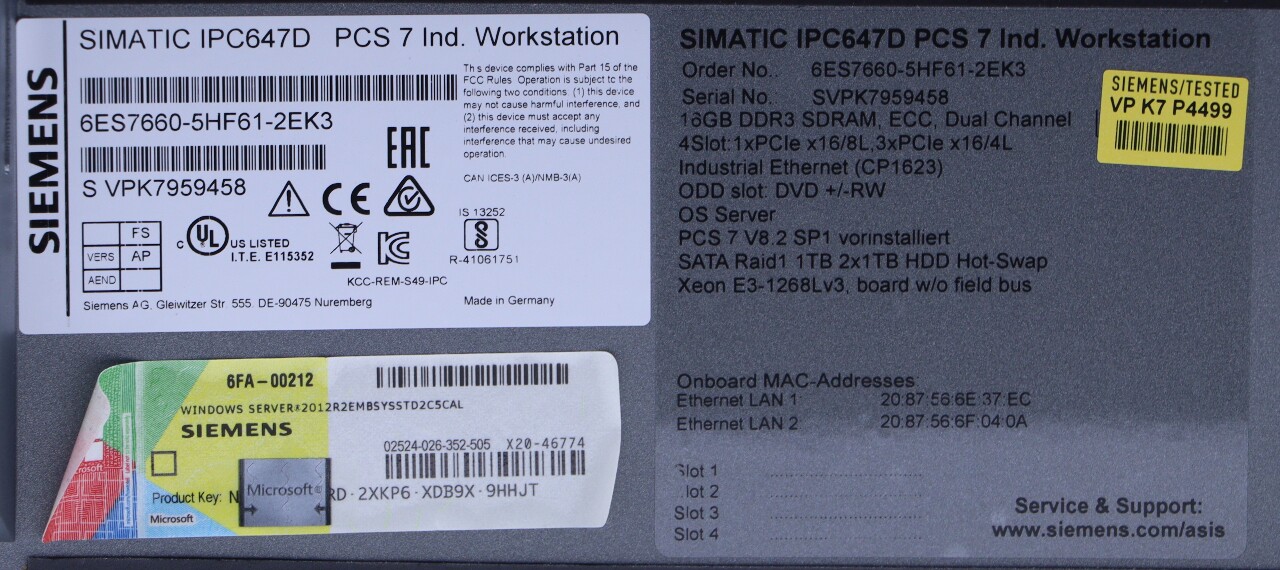 * SIEMENS SIMATIC 6ES7660-5HF61-2EK3 PCS 7 IPC647D INDUSTRIAL WORKSTATION