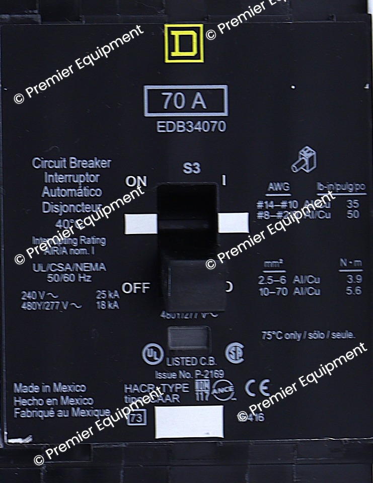 * SQUARE D EDB34070 70A CIRCUIT BREAKER