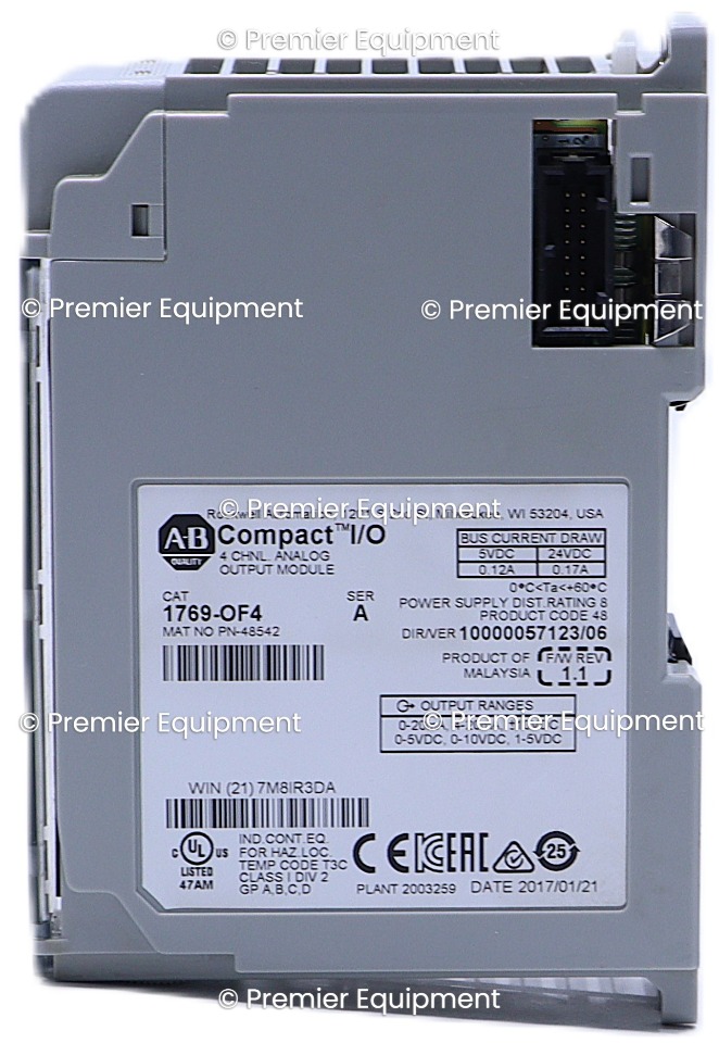 ALLEN BRADLEY 1769-OF4 SER A 4-CH ISOLATED OUTPUT MODULECOMPACTLOGIX4 CHANNELVOLTAGE/CURRENT ANALOG OUTPUT0-20 MA24 VDC