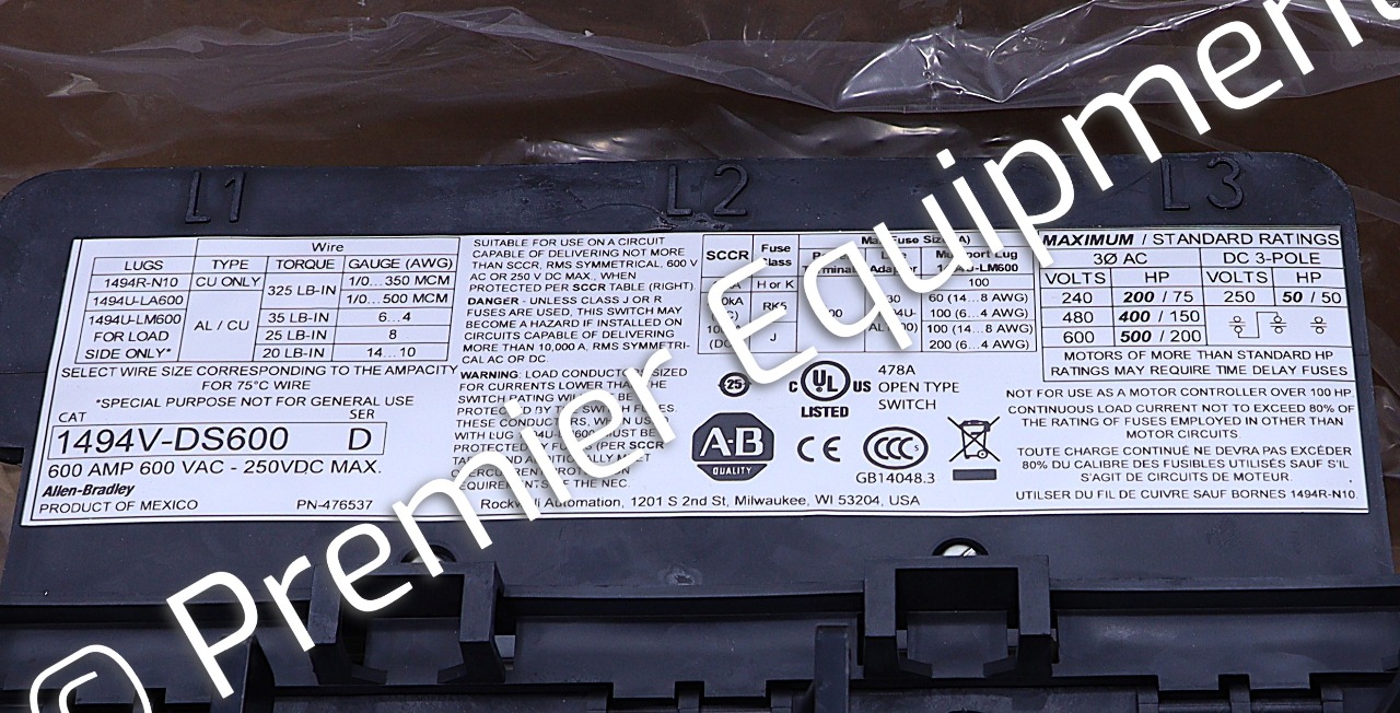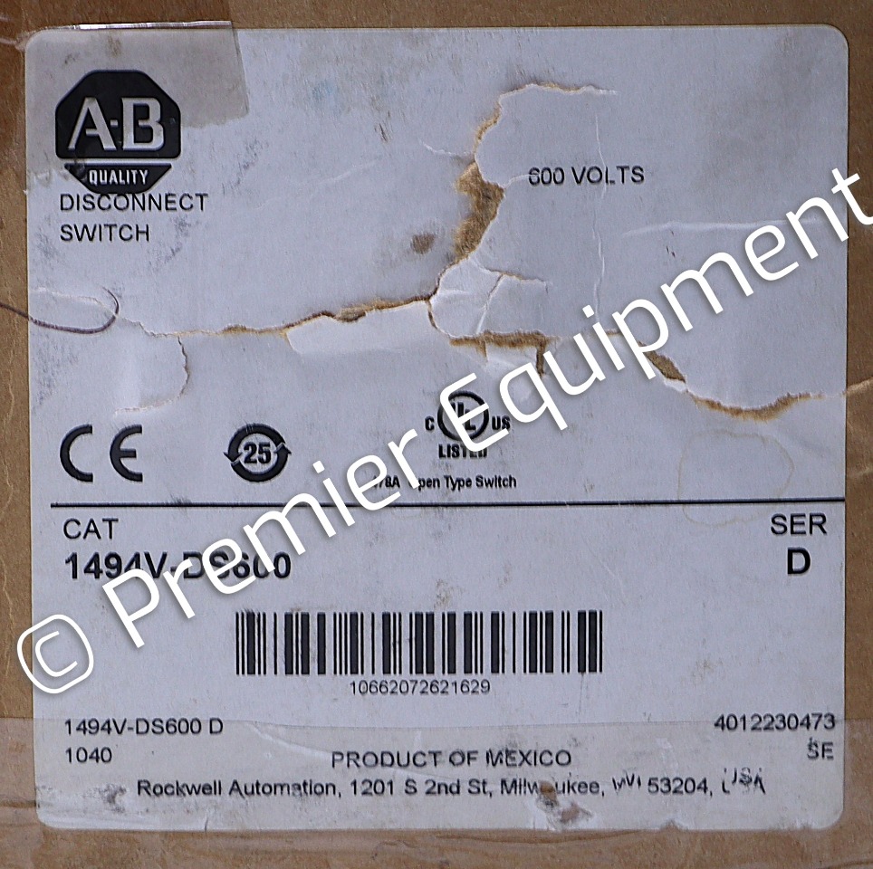 ALLEN BRADLEY 1494V-DS600 SER D 600A 600VAC DISCONNECT SWITCH