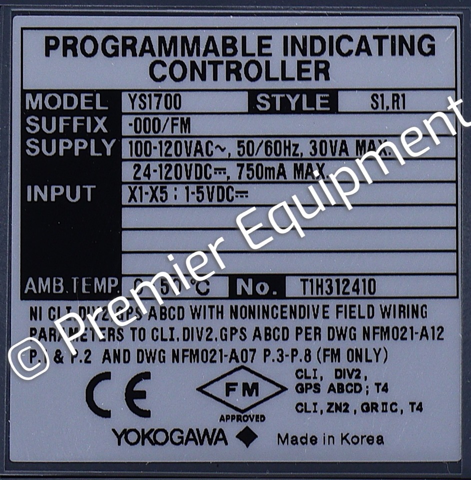 YOKOGAWA YS1700 YS1700-000/FM PROGRAMMABLE INDICATING CONTROLLERSTYLE S1,R1