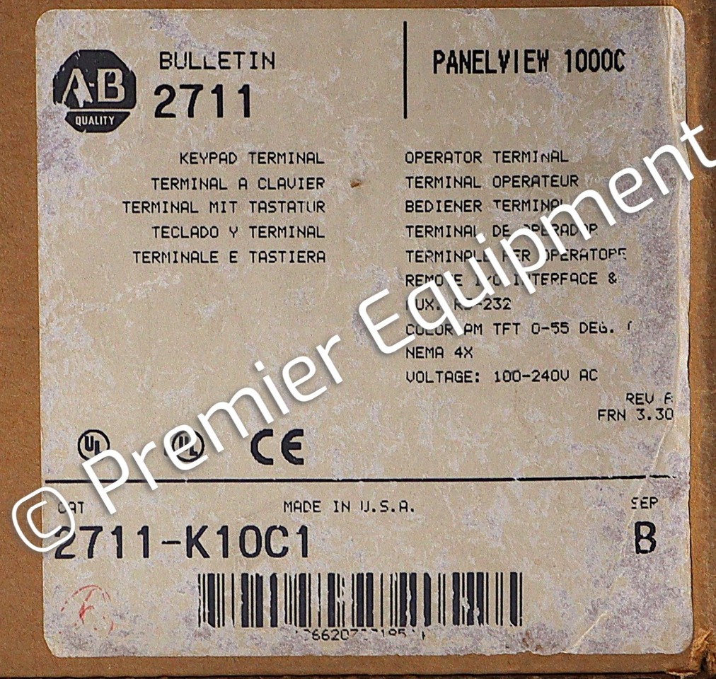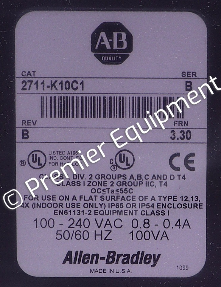 No factory label on the boxSer B, Rev B, FRN 3.30KEYPADPANELVIEW 100010 INCH DISPLAY640 X 480 PIXELSCOLOR DISPLAYREMOTE I/ORS-232100-240 VAC INPUT50/60 HZ