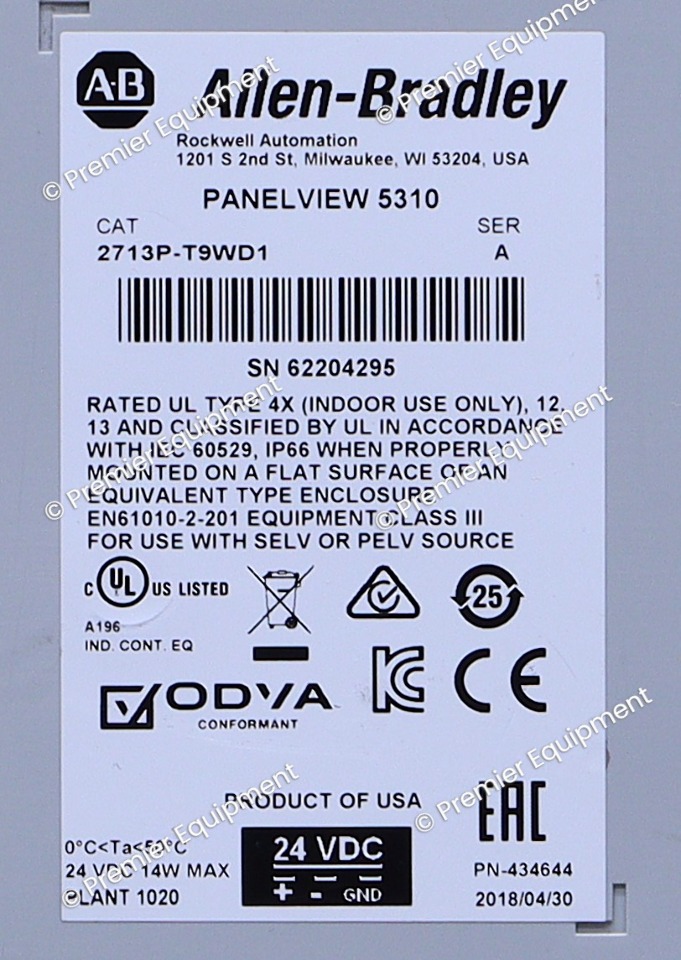ALLEN BRADLEY 2713P-T9WD1 SER A PANELVIEW 5310 OPERATOR INTERFACE