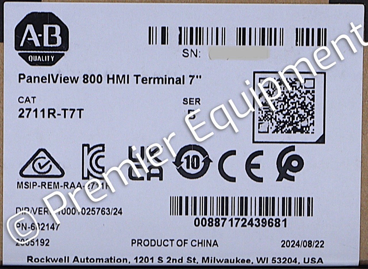 ALLEN BRADLEY 2711R-T7T /B PANELVIEW 800 HMI TERMINAL 7"