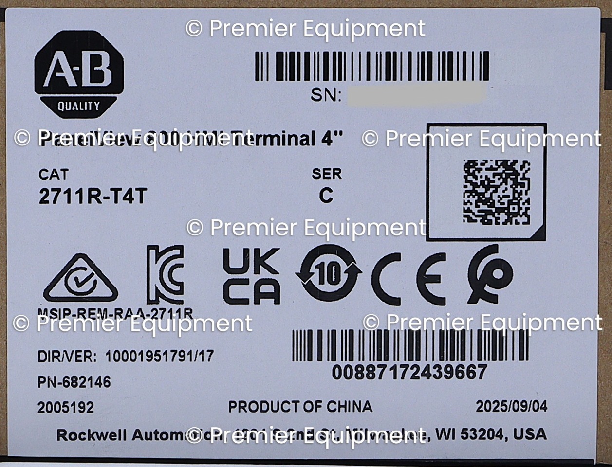 ALLEN BRADLEY 2711R-T4T SERIES CPANELVIEW 800 HMI TERMINAL4" TOUCH SCREEN 24VDCMfg. 2025NEW IN FACTORY SEALED BOX