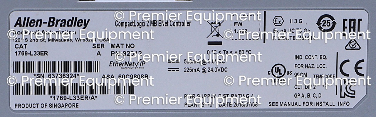 * ALLEN BRADLEY 1769-L33ER SER A COMPACTLOGIX 2MB ENET CONTROLLER