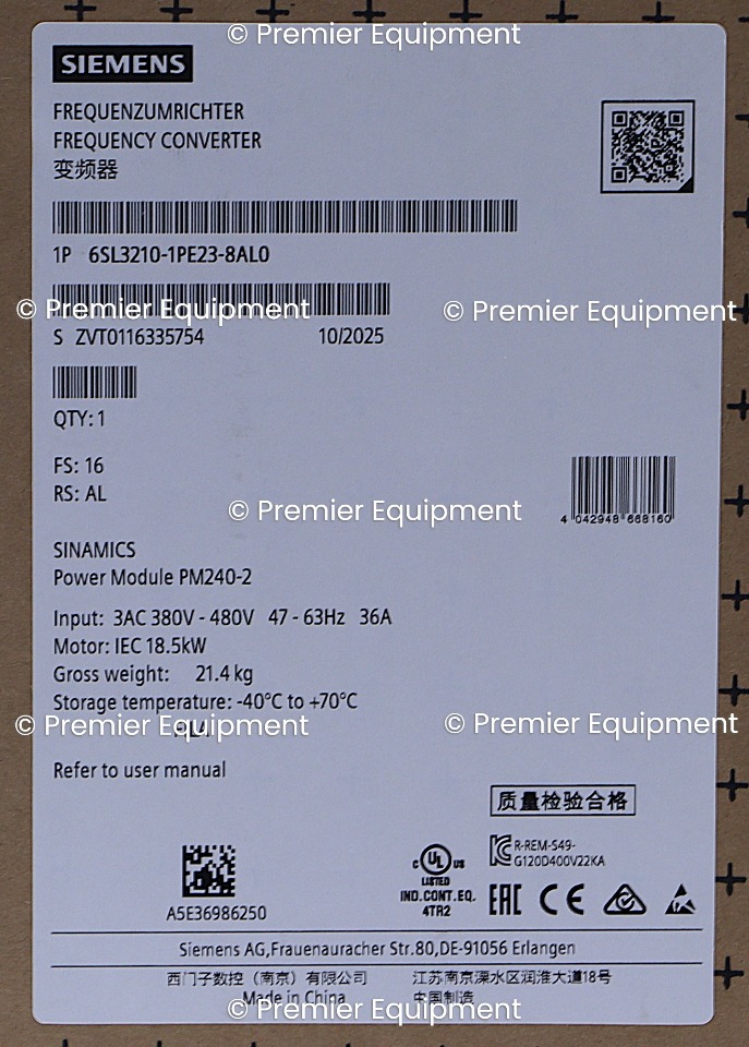 6SL32101PE238AL0PM240-2 POWER MODULE3-PHASE IN200HZ OUT18.5 KW480 V AC36 ANEW IN FACTORY SEALED BOX